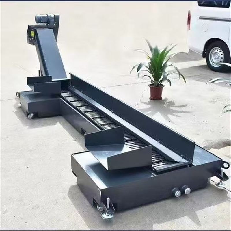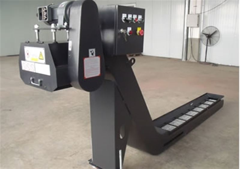 2、链板排屑机是多用途的物料输送装置,其带提升形式特别适用于含有冷却液切屑的输