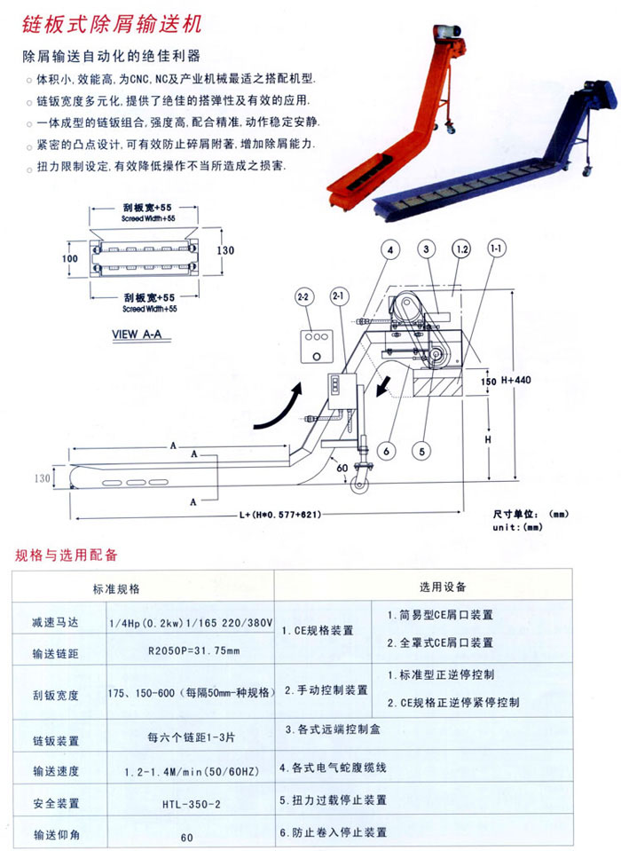 链板排屑机特点: