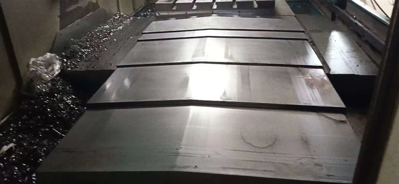 6.在原密封胶条的基础上又加盖了一层不锈钢盖板,防止铁屑高温烧伤胶条擦入轨面拉伤导轨。