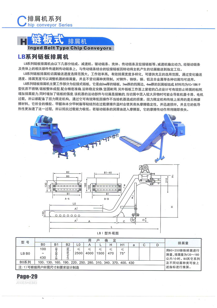 链板排屑机特点: