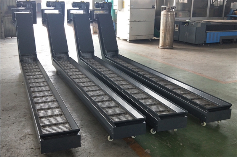 2、链板排屑机是多用途的物料输送装置,其带提升形式特别适用于含有冷却液切屑的输